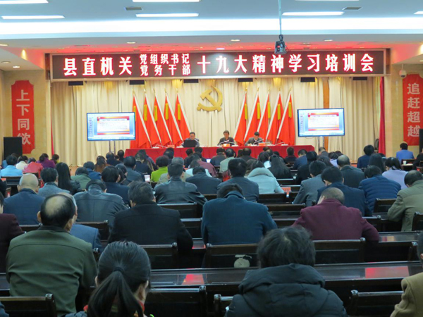 11月15日,洛南县直机关工委召开县直机关党组织书记、党务干部学习十九大精神培训会,对县直单位学习宣传贯彻党的十九大精神进行再部署,迅速掀起县直机关党员干部学习贯彻党的十九大精神新高潮。